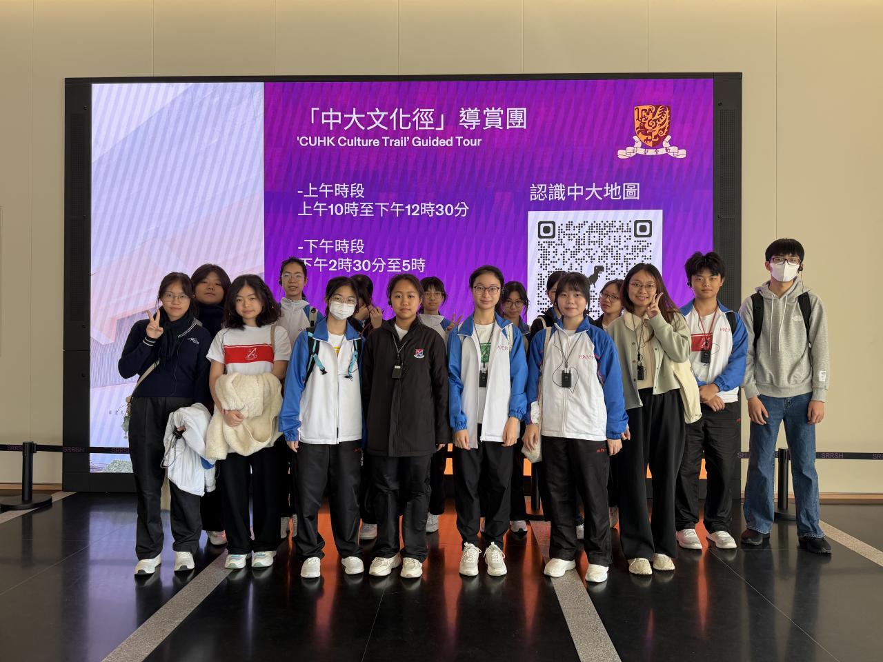 來自中四、中五的同學在中大學生的帶領之下,遊走於邵逸夫堂、林蔭大道、仲門、合一亭及未圓湖等中大景點,親身感受中大的文化氣息,認識不同的建築藝術。通過與中大學生的互動交流,同學也對中大的校園文化和書院特色有了更深入的了解。