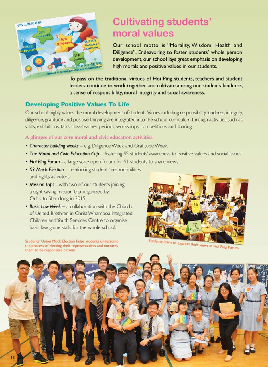 • Cultivating students’ moral values